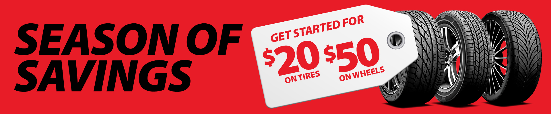 At RNR Tire Express, we make getting new tires and wheels easy, affordable, and stress-free. Our Season of Savings event means you can hit the road today for as little as $20 down on tires or $50 down on wheels – with no credit needed and flexible payment options guaranteed to fit your budget.